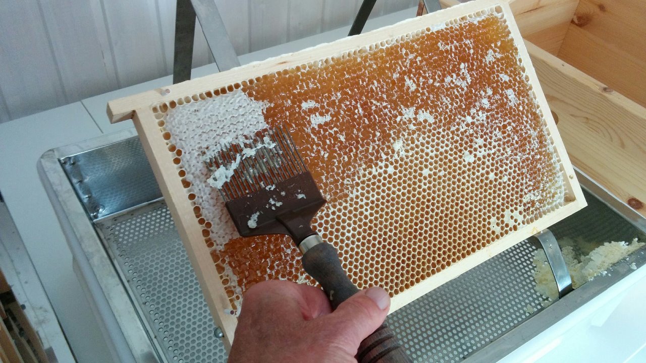 Våren 2016 var fantastisk för både människor och bin och första skattningen och slungningen blev rekordtidig. Denna första försiktiga skattning och slungning gav 10 ramar. Honungen var, lite ovanligt för säsongen, rätt mörk. Men 2017 blev den ingen särskild vårhonung utan vi går direkt på sommarhonungen.